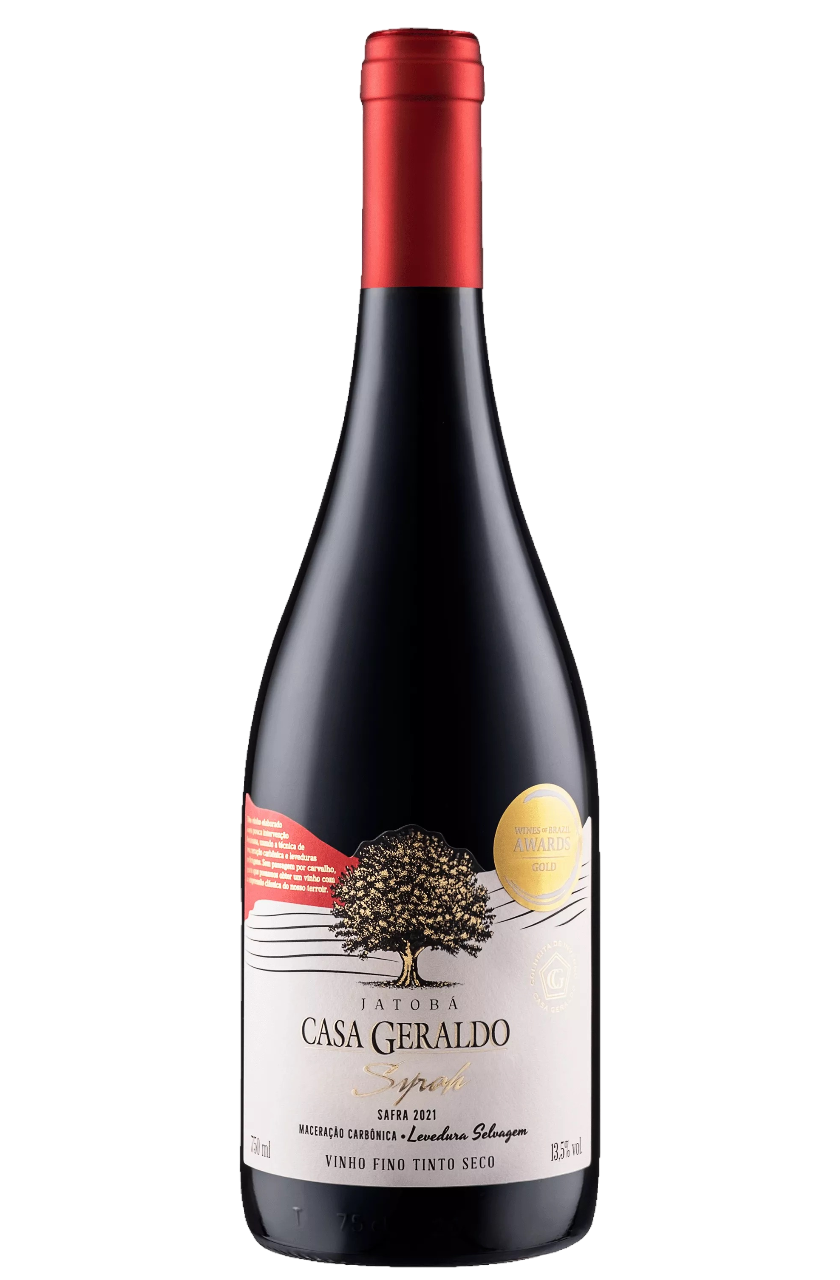 Na boca, o Vinho Casa Geraldo Syrah Jatobá é aveludado com acidez leve e equilibrada, fácil de beber, com taninos macios e redondos, tendo um final prolongado e saboroso.