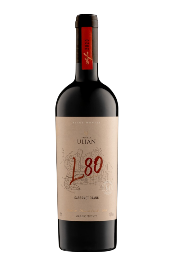 O Vinho Ulian L80 Cabernet Franc apresenta uma coloração vermelho rubi, límpido e brilhante.